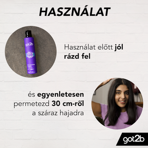 A Got2b Volumania hajlakk növeli a haj volumenét a hajtövektől a hajvégekig, továbbá hosszan tartóan rögzíti a hajat anélkül, hogy elnehezítené.