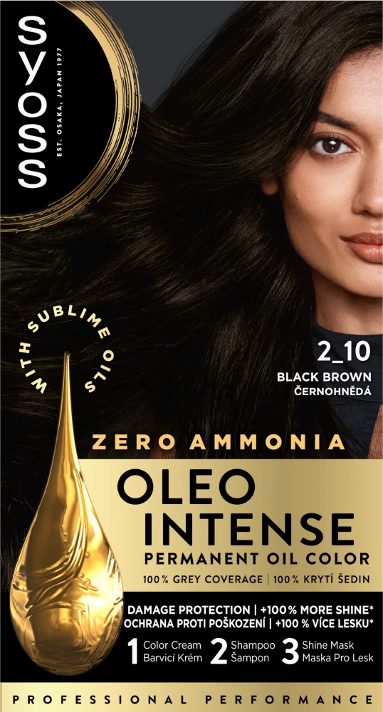 A Barnásfekete 2-10 árnyalat egy sötét intenzín barna és természetes fényű hajszínt eredményez. Ez az árnyalat a sötétszőkétől a fekete hajszínig ajánlott. A Syoss Oleo Intense tartós hajfesték olajjal gazdagított formulája egészséges kinézetű hajat és gazdag ápolást biztosít. Ammóniamentes hajfesték. FAIR TRADE argánolajjal. Árnyalattól függő őszhajfedéssel.